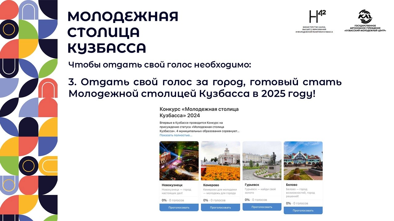 3. Отдать свой голос за город, готовый стать Молодежной столицей Кузбасса в 2025 году!